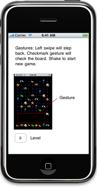 Touch the level button to set the difficulty and shake your iPod for a new game.